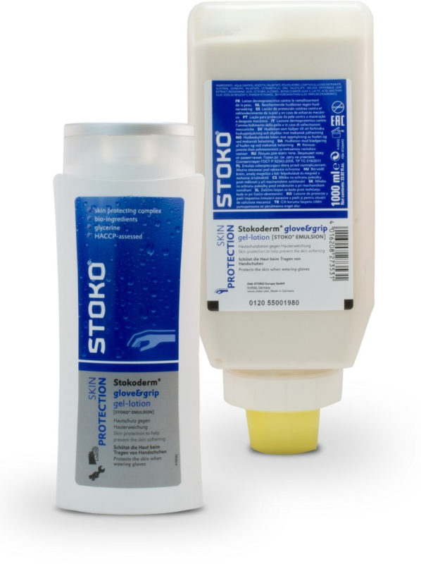 Właściwości: Stokoderm® glove&grip to profesjonalny krem ochronny, który zapewnia skuteczną ochronę skóry narażonej na działanie wilgoci oraz przed maceracją. Produkt ten chroni skórę nawet w przypadku długotrwałej pracy w odzieży ochronnej, takiej jak gumowe buty i rękawice czy kombinezony. Dodatkowo może być stosowany do wzmocnienia naskórka narażonego na działanie mechanicznych napięć, np. od narzędzi, oraz przy kontakcie gołych dłoni z włóknem szklanym. Krem ułatwia również zmywanie zanieczyszczeń spowodowanych przez barwniki.