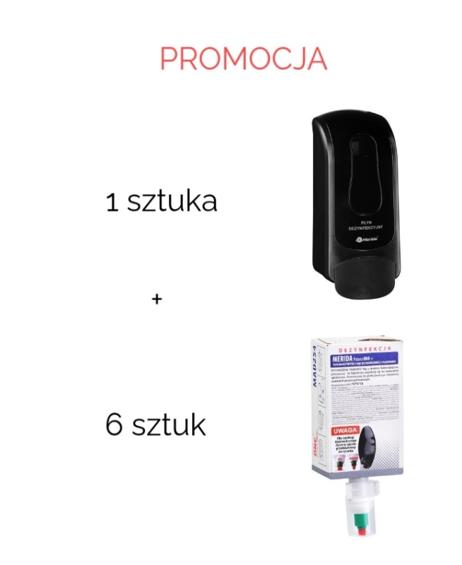 Zestaw MERIDA ONE w eleganckim czarnym kolorze wraz z 6 wkładami płynu dezynfekcyjnego MERIDA POLANA DDR+ to nowoczesne i wygodne rozwiązanie, które zapewnia skuteczną dezynfekcję rąk w każdym miejscu o dużym natężeniu ruchu, takim jak biura, sklepy, placówki edukacyjne i medyczne.